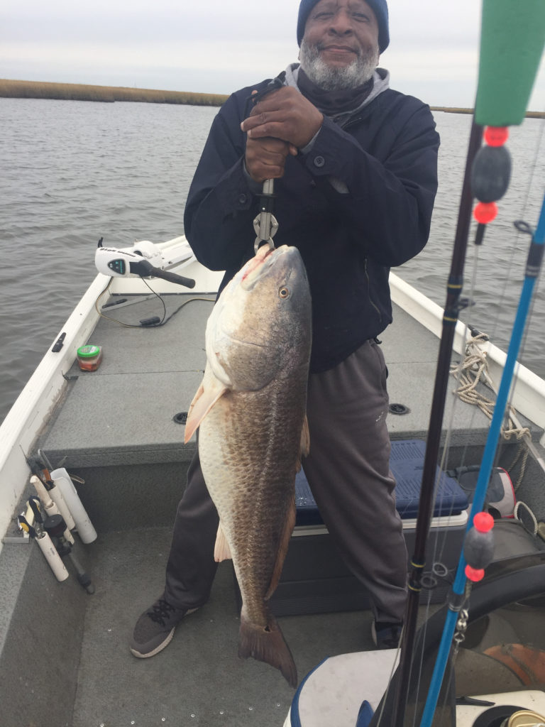 Donald Griffin caught this 28-pound redfish with a live shrimp under a cork in Adams Bay out of Empire.