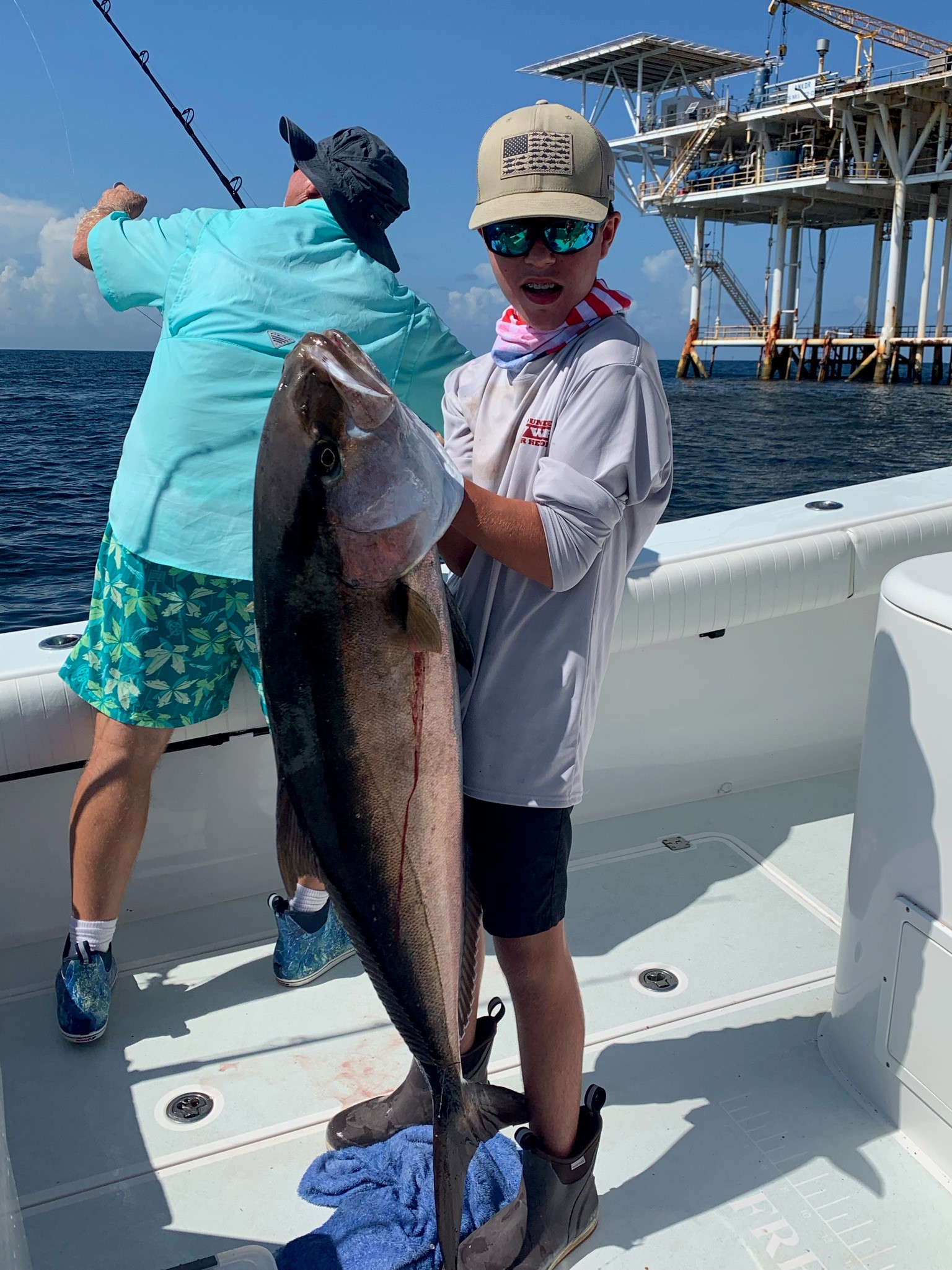 Ethan Defelice made a trip with his uncle, Brett Adams, to the SMI blocks and caught this amberjack.