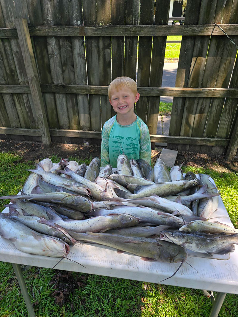 James “JC” Corley, 6, of Winnfield, La., won the fishing derby held in Winnfield by the LDWF. He caught 37 catfish!