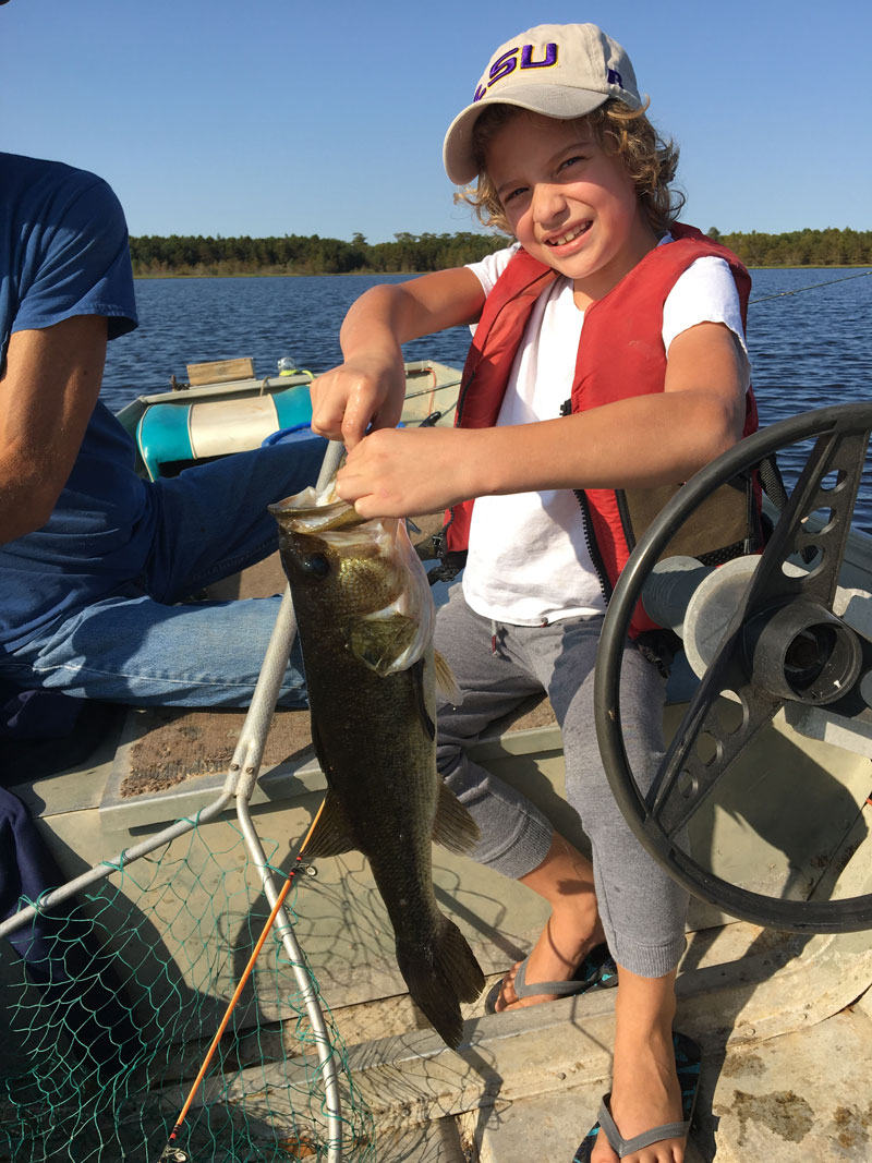 On October 3, 2020 Shane Brownlee caught his first bass while fishing with his grandparents, Guy and Laurie Dazzo of Slidell, LA. Measuring in at 19 inches, the bass was caught at the pond where Highway 190 meets Highway 90. Shane was using his mother’s little pole, which is at least 25-years-old.