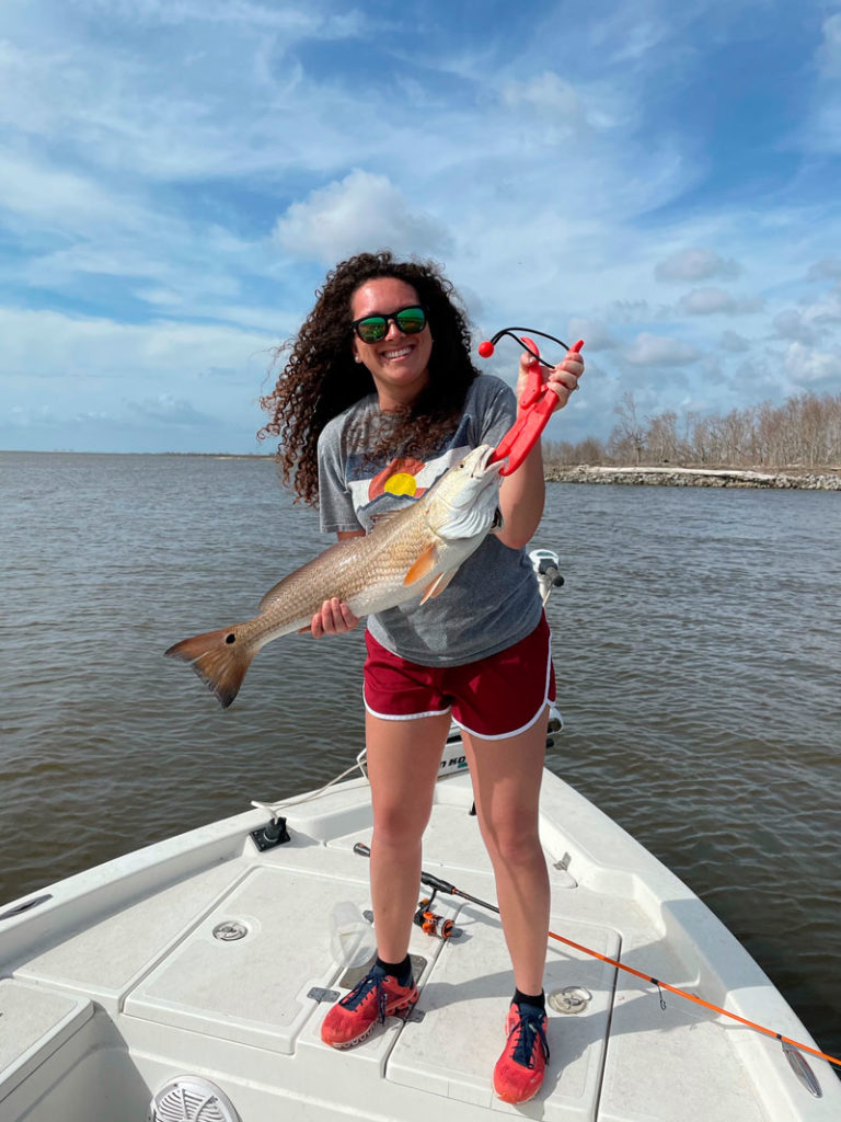 Mishka Mire Elliott was fishing Big Lake on March 13, 2021 when she hooked this 30-inch red on 12-pound tackle. She was using dead shrimp on the bottom. The fish was released back into the water after a quick photo.