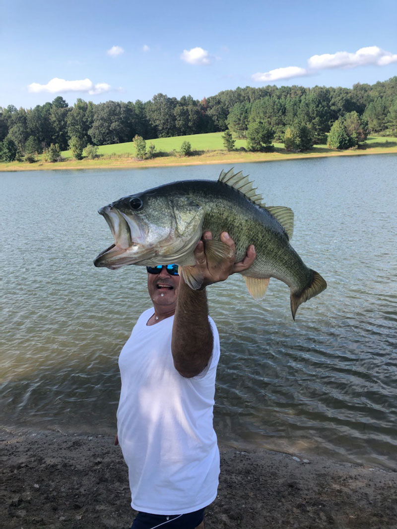 On Sept. 26, 2020, Steven Guttuso made a last minute decision to go fishing while his wife and daughter went out shopping. Fishing in a pond outside of Tallulah, LA, Steven hooked a monster bass and immediately realized that his drag was too tight. Steven walked into the pond to reduce the tension on his line when the bass came out of the water and shook his head. Both Steven and his son couldn’t believe that the fish might be a bass, but when the fish emerged from the water and tried to spit the hook for a second time, they knew it was a bass of a lifetime. Steven hauled the beast in, took a few pictures, weighed the fish in at 10.5 pounds, and then released him to fight another day. There isn’t a day that goes by that Steven doesn’t think of this great memory.