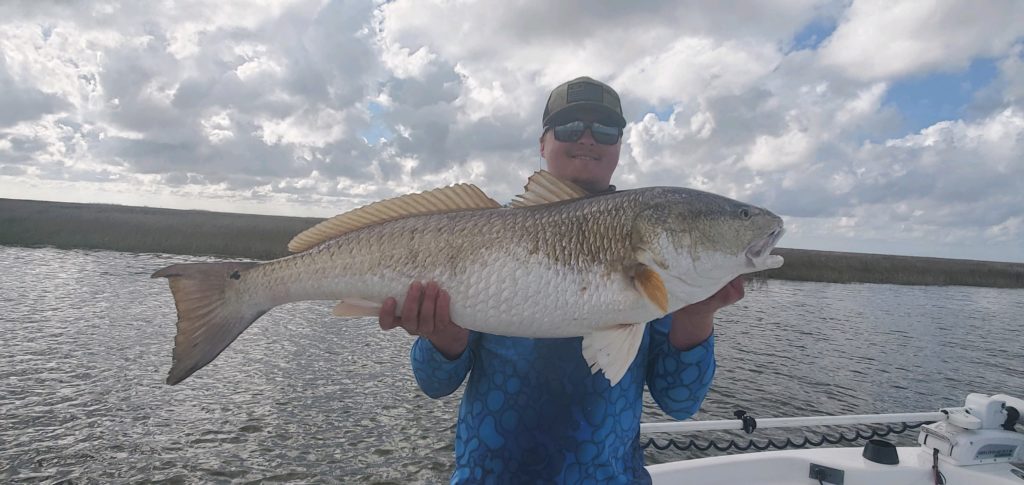 In March 2021, my wife and I took our son Ben and his friend fishing in Delacroix with New Delacroix Fishing Adventures. We decided to take a run out to Black Bay so they could see the oil rigs for the first time and Ben landed a monster red on shrimp/cork. It was the best day of our life to experience the joy of catching the biggest bull red we have ever seen. The fish was released to enjoy another day.