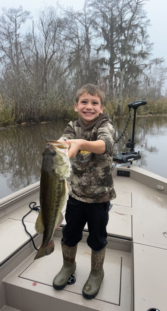 Jase LeBlanc with his first bass caught in 2023 while spending time at his family’s camp on the Tangipahoa River during Christmas break.