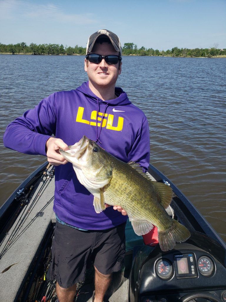 Nicholas Gorum with a 7-pound, 3-ounce black bass he caught using a fluke on April 22, 2021 on the Sabine River. It was released after the photo.