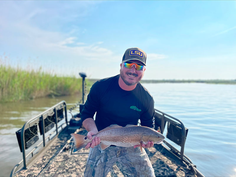 Scott Gibson with a nice redfish caught with an H&H Gold Spoon on May 23, 2023 in the Rigolets near the L&N train bridge.