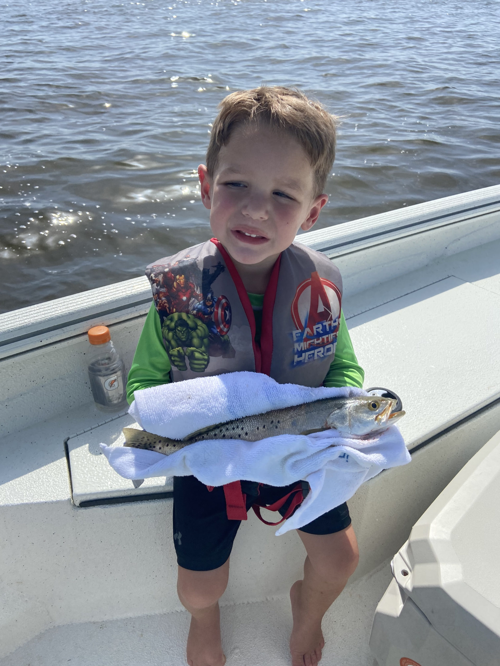 Beau Breaux, 3, caught this speckled trout by himself while fishing the east side of Leeville with his dad, big brother, and Paw Ernie. One of many caught throughout the day.