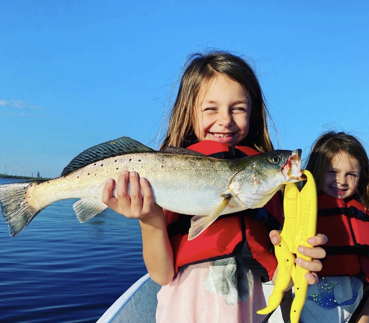 My second oldest daughter, Nora (7), Caught this 20″ trout trolling swimbaits along the Calcasieu Ship Channel in early December.