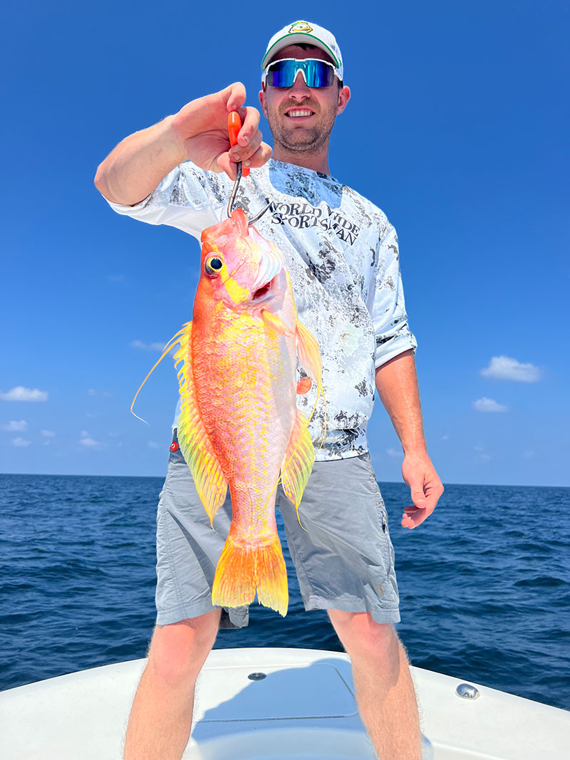 Zack Foster Zack Foster with a longtail sea bass caught out of Venice at 600 feet.