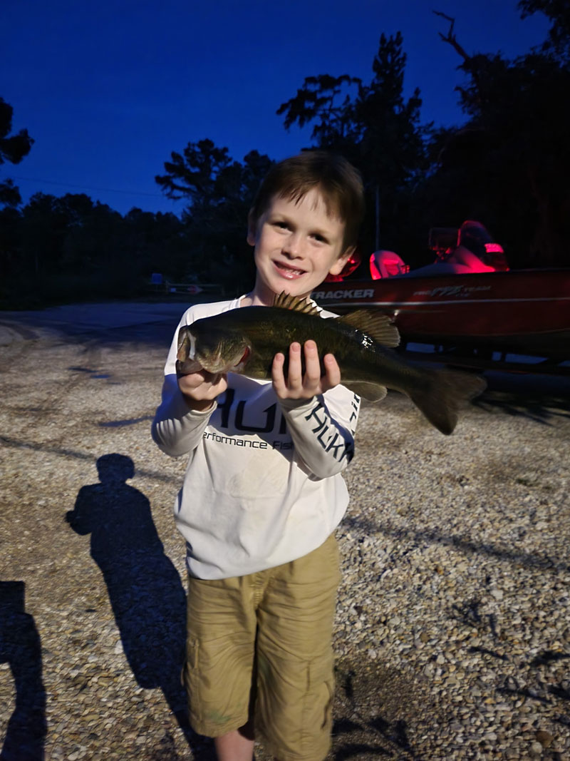 Six-year-old Willie Lee aka “Hammer Time” caught this 3.10 pound bass from Bayou Lacombe on a Booyah Pad Crasher to win an evening derby against 7 men.