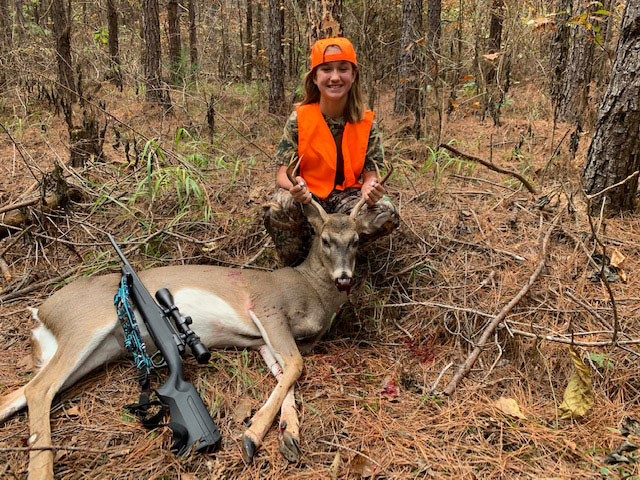 Twelve-year-old Amalie Sumrall of New Iberia killed her first deer while hunting with her dad in Arkansas.