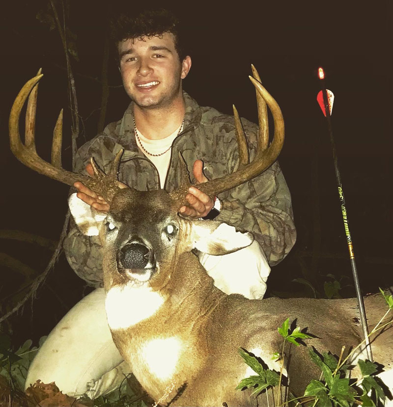 My name is Cade Clemons, I’m from Minden, LA. I killed this 9-point with a kicker with my bow on the evening of November 9, 2020 in Transylvania, Louisiana at Lookout Point Hunting Club. The buck scored 152 3/8 and weighed 265 pounds. He was seven and a half years old. I had passed on several other big bucks close to 140 inches waiting on this big boy.