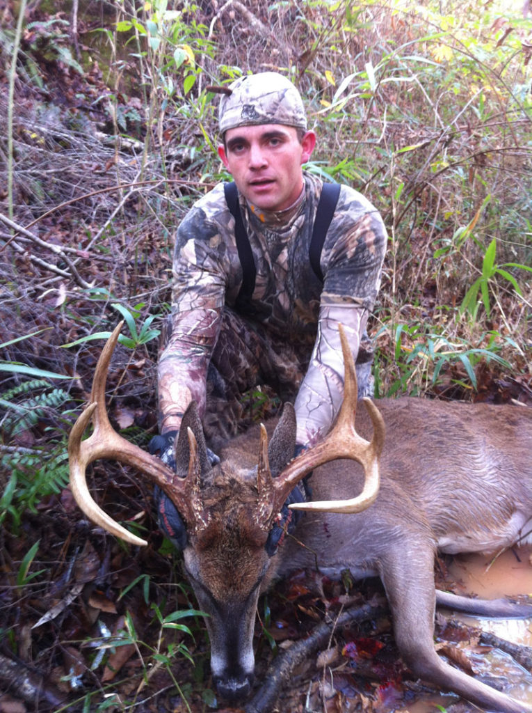 Jonah Boudreaux stuck it out in brutal 20 mph winds on a bone chilling January morning and it paid off big. He scored this nice 8-point, which tipped the scale at 224 pounds The 6 1/2 -year-old buck had eluded hunters in the area except for a handful of trail camera pics over the years.