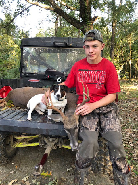 Connor Sullivan, 15, took his first deer with a crossbow while Tucker the dog tracked and found the buck for him on Oct. 18, 2020.