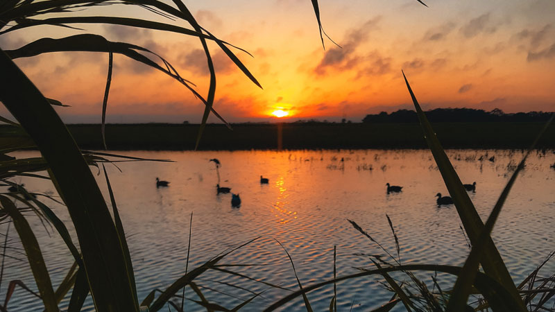 Preston Salassi captured this sunrise over Pine Island while hunting with his friend Daniel Mesen, his son Kale, and their Boykin Spaniel, Sue. They scratched a two-man limit that day along with a pair of banded blue wing teal.