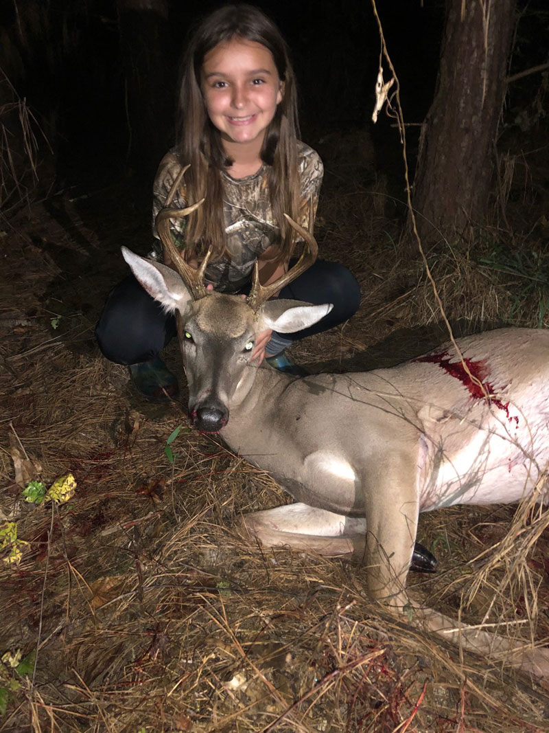 Harley Mayberry, 11, took her first buck, a six pointer, with a 30 yard crossbow shot while hunting in Livingston Parish on Oct. 4, 2020.