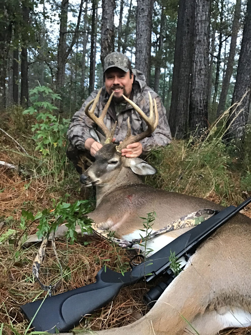My son John had his heart set on where he wanted to hunt, but he forgot his boots at home so instead he chose this high ground stand to keep his feet dry…..good thing he forgot those boots! He took this nice 192 pound 8-point from central Tangipohoa Parish at about 40 yards with a 180 grain .30-06 on Wednesday, Dec. 2nd, 2020 at 4:20 pm.