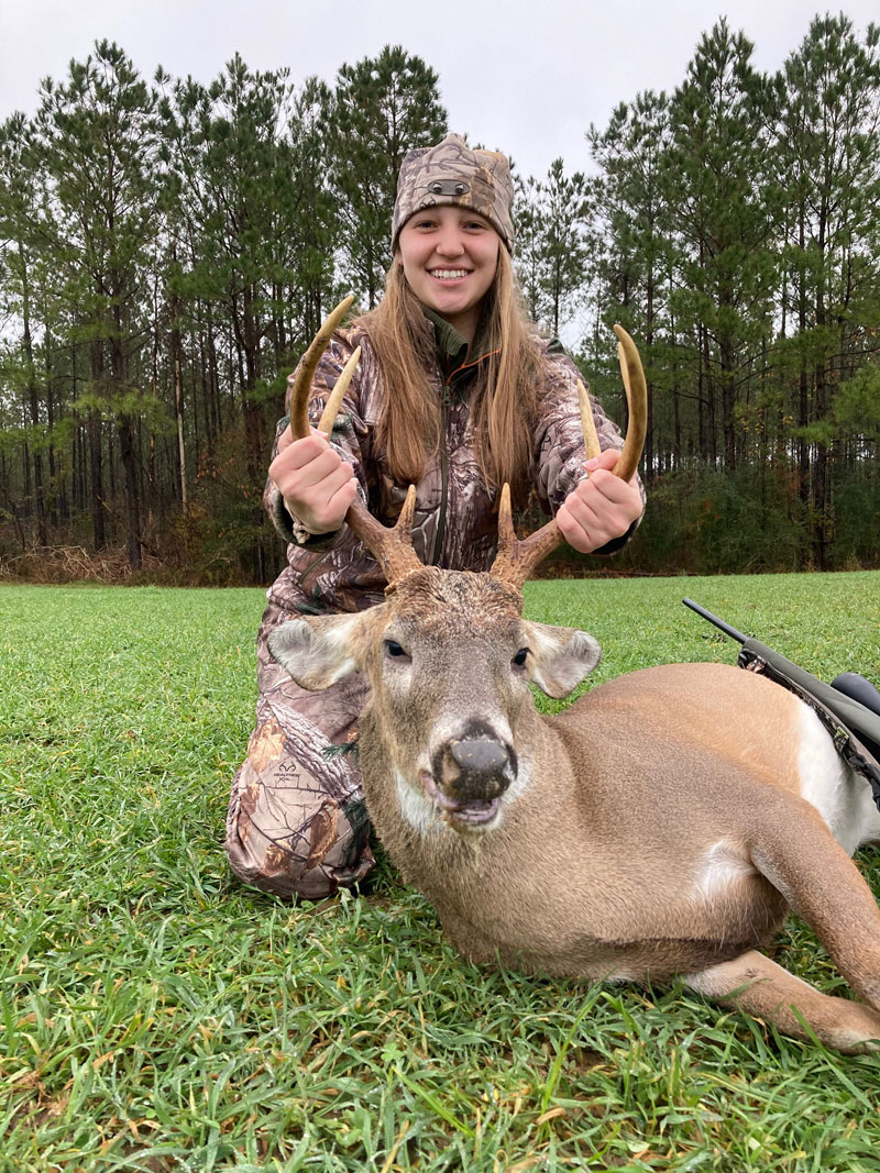 Lizzie Adams shot her first buck with a 7MM-08 on family land near Liberty, Miss., on Dec. 20, 2020. She was hunting with her dad and uncle.