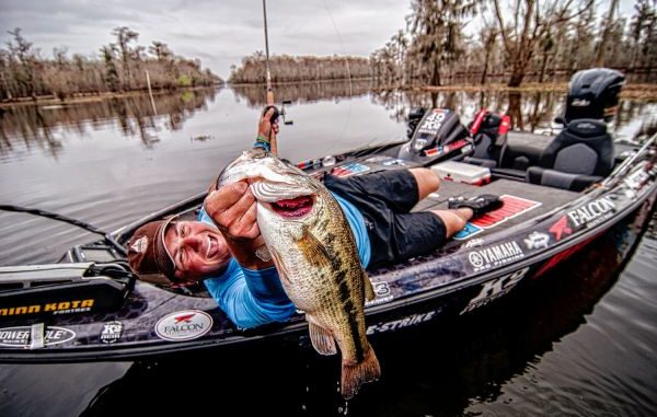 It didn’t take long for the angler known on the pro circuit at “The Cajun Baby” to put his first bass, a chunky Kentucky, in the boat.