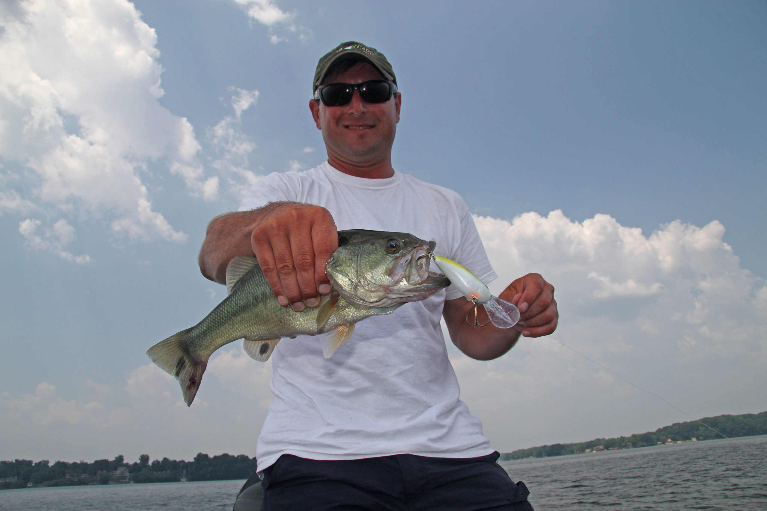 “But if that minnow bucket was warm and those minnows were all feeling good and energetic, if you bumped that bucket, they’d dart from side to side. That’s a harder vibration, which comes back to a wider-wobbling crankbait.”