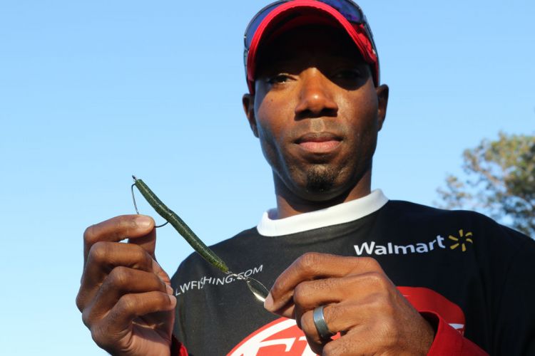 Deridder’s Antwon Harris likes to dress up his Senkos with silver willow leaf spinner blades attached to the tail with screw-in keepers.