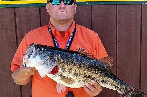 “Right after that, I hooked a bass which came up and out of the water, and I immediately told Shayne that it was a 10-pounder,” he said.