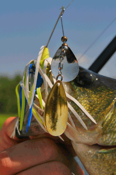 Odds are you’ll find 75 percent have tied on 3/8-ounce chartreuse-and-white spinnerbaits with tandem Colorado/willow-blade combinations.