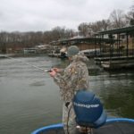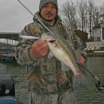 “They’re already sluggish because of the cold water, and that jerkbait is the perfect bait to sit there, whereas you can put a light weight on a soft plastic and give it a slow fall but it’s going to go down to the bottom,” he said. “A suspending jerkbait is pretty much the only thing that’s just going to sit right there in front of them.