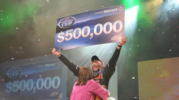 For winning the most lucrative tournament in bass fishing, Tharp earned $500,000.