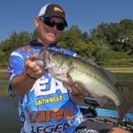 Marks also follows a similar plan: He’s a big fan of “machine-gunning” an area with a Strike King Redeye Shad lipless crankbait to search for active fish.