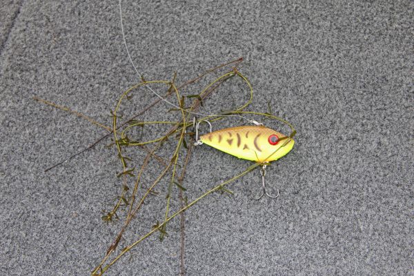 Snagging the edges of grass and ripping the bait free is a tried-and-true tactic for enticing prespawners.