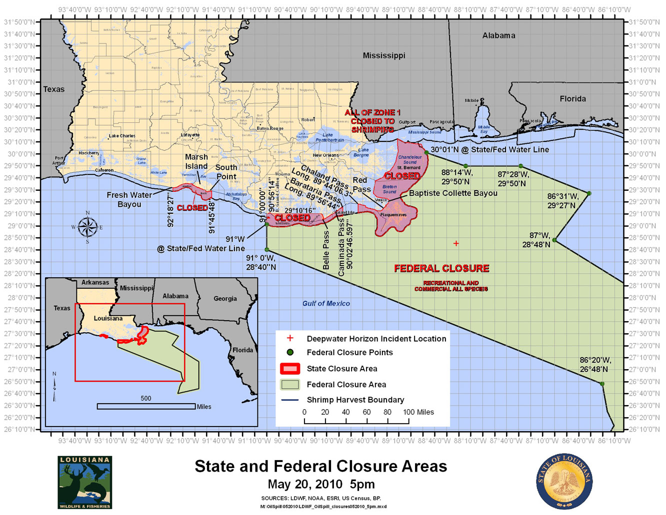Click here to see the LDWF map of current state closures. To see a full-sized LDWF map of state and federal closures, click here.