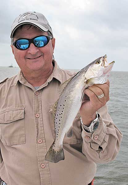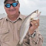 “By the way,” Lambert said. “This will be a great month for topwater action around the reefs and flats, wherever you find some shallow structure, signs of baitfish (especially mullet) and clean water. Every year at this time, we catch trout in the 7- and 8-pound class out here, and this is the month it happens.”