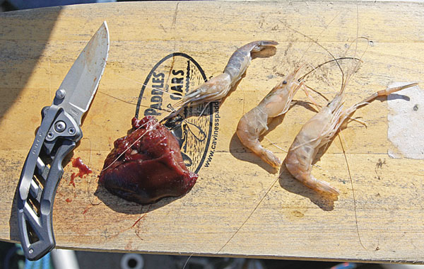 I have to admit, as a bonafide believer and near exclusive user of river shrimp, Ratcliff put three blue bullies in the boat on rat liver before I landed my first fish on my favorite bait.
