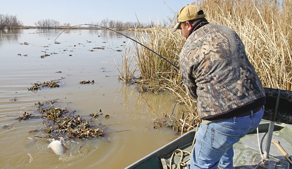 “I like to fish the shallows first,” Ratcliff said. “If the fish are on, I’ve got more time to fish. But if it isn’t happening, I’ll move from 2 or 3 feet of water to 6 or 7. And if no luck there, I’ll go to deeper locations. You can’t always pinpoint how deep of water at first you need to go to catch fish. That’s why I like to start shallow and work my way to deeper water.”