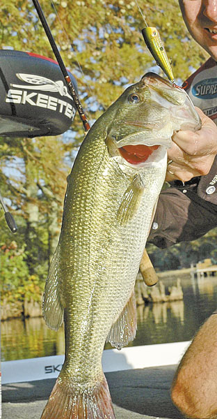 I also like it because it’s a confidence builder. I want to go into the 2011 Bassmaster Classic with as much confidence as I can. You can expect to catch a lot of bass, but probably not really big bass. The water is hot in September, and the oxygen level is about at its lowest point, which makes the bass very predictable. The bass must hold in places with plenty of moving water and more oxygen.