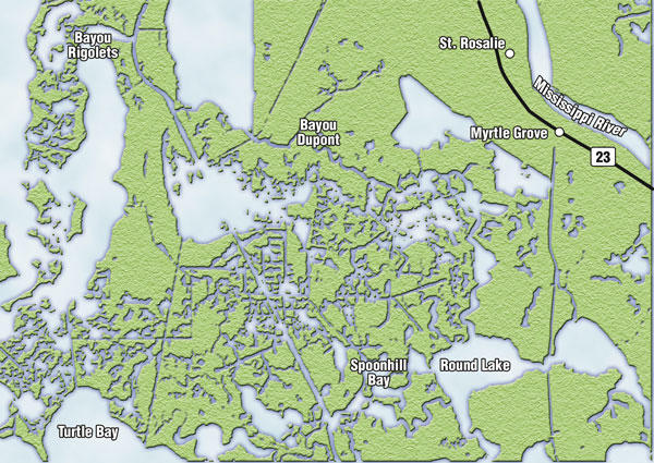 The smart angler will make a U-turn, and set the GPS for an area bordered roughly by Bayou Dupont, Myrtle Grove Canal, Round Lake and Bayou Rigolets.
