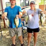Before the mid-day bite or on cloudy days, Baum says a good way to find fish is just ride the river and use your electronics to locate balls of shad. That is where the crappie will be, too. On some days, big schools of shad roam up and down the channel and if you see that, go fish there. You will often see white “flashes” in the water and that’s usually crappie coming up and getting a mouthful of shad. In the middle of the day, the fish usually pull off to one side of the channel or the other. That means they leave the 14-15 foot water and submerge in 4-9 feet of water around the stumps that line the bayou.