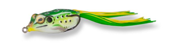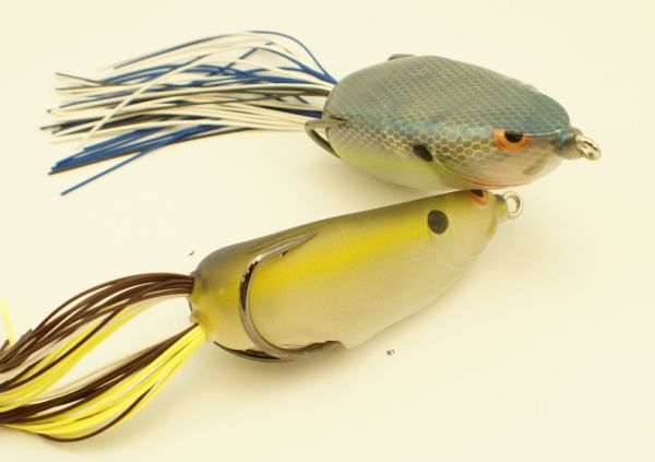 Designed by Bassmaster Elite Series pro and renowned topwater frog fisherman Dean Rojas, the Bronzeye Shad resembles the venerable Bronzeye Frog, but the skirted legs are aligned vertically instead of horizontally.