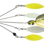 Light enough for use on spinning tackle, the QuadZilla’s matching silicone head slides up and down the spinnerbait arms for collapsibility and storage between uses. And the ¾-ounce bait comes in six colors and sells for $10.99.