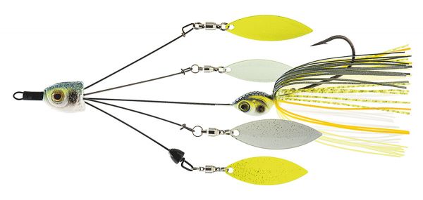 Made to emulate a baitfish school, the QuadZilla is keeled to run upright and true on every cast. And with four willow leaf blades surrounding the central spinnerbait body, this innovative lure goes big on the attention-getting flare with considerably less snagging risk than multi-hook rigs.