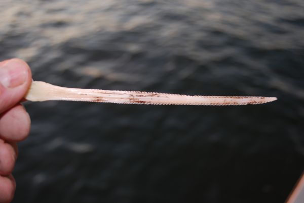 Another reason to get them off the boat is that the spines on top of their tails can be dangerous to crewmen sorting the shrimp catch. The groove on the bottom of the spine holds mucous and toxins produced from a spongy venom gland under the spine.