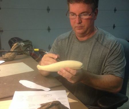 His home design business — Design Collaborative, LLC — gives him a unique edge in having access to computer programs that assist in laying out the images of the fish onto the wood.