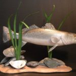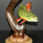 His subjects are typically mounted on a driftwood base, and from start to finish, he said a 14-inch trout can take 30 hours to complete.
