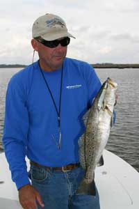 One of the things that separate professional guides from weekend anglers is the experience of time spent on the water. However, sometimes the fish do things that leave even the best guides searching for answers. Take my recent trip with Captain Jeff Poe of Big Lake Guide Service (337-598-3268) for example. We caught a limit of speckled trout at Big Lake, but we also lost more than a limit. It was enough to leave Poe scratching his head.We began our day fishing the north end of the lake with a combination of glow/chartreuse Norton Sand Eels on 1/8-ounce jigheads and Storm Thundersticks. The Thunderstick is a discontinued jointed jerkbait that Poe made famous recently with Kevin Ford on an episode of Louisiana Sportsman TV.