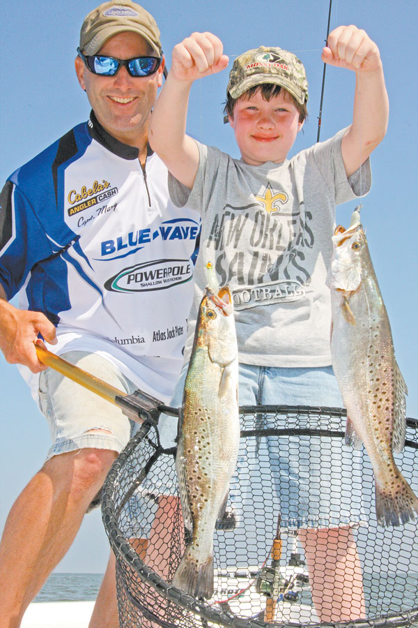 That’s what I wanted. I wanted my son to BURN HACK the trout. So when LaCoste informed me that he was reaching his charter limits by catching trout two at a time on double rigs, I dropped everything and loaded my son and his cousin in the truck at 2:30 in the morning to make the drive down to Bayou DuLarge.