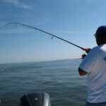 So we fished. For the first 15 or 20 minutes, we worked along the sound side, trolling and casting our baits both toward the island and away from it, because you never know whether the fish will be close in or farther out.