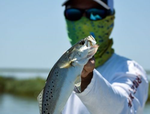 By the end of the trip, the ferocious, aggressive speckled trout had created a custom color you won’t find in any store across the country if your life depended on it.