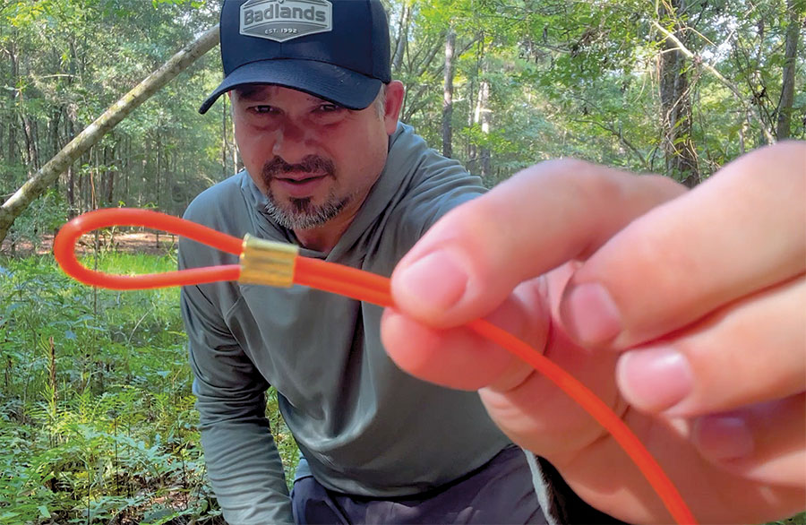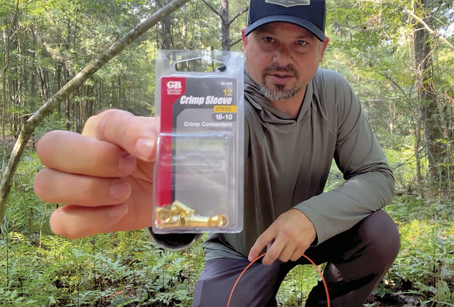 After that trip, I’ve used that same orange Weed Eater line for all of my fishing trips and have captured some of the state’s greatest fishermen holding stringers of fish. Not once has the stringer given me problems. However, I have made one slight adjustment. Instead of using the tied loop on the end of the line, I now use a crimp to clamp a small loop to lock in that first fish.