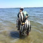 “We saw a lot of slicks where some specks were feeding, but there were pockets of pretty water,” he said. “Instead of focusing on one spot, we just watched for pretty water and that’s what we fished.